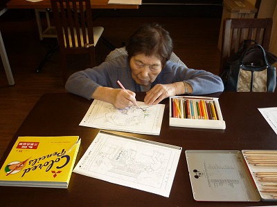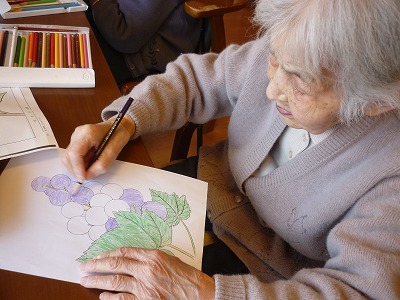 室内では、塗り絵が好きなご利用者さんが丁寧に