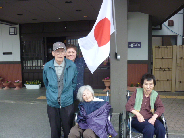 国旗の前で写真を撮りました~laugh