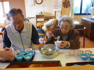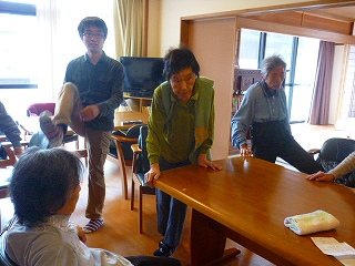 お昼前には皆さんで体操をされ、個別のリハビリもされていました。