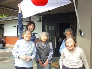 今日は憲法記念の日ということで、国旗の前で写真を撮りました☆