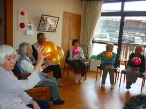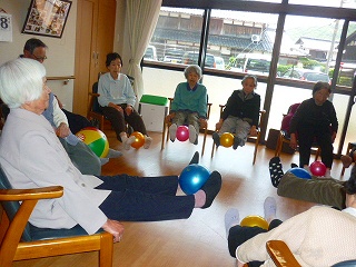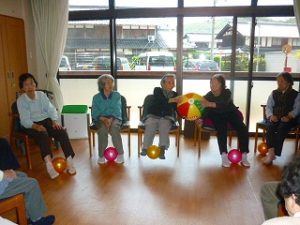 皆さんボールをしっかりはさみ、お隣の方に廻したりと色んな運動をされました。