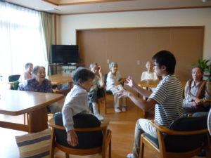 皆さんと一緒に体操をしています。