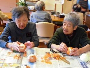 後ろでは地域の方が立ち寄ってくださり談笑しておられる方