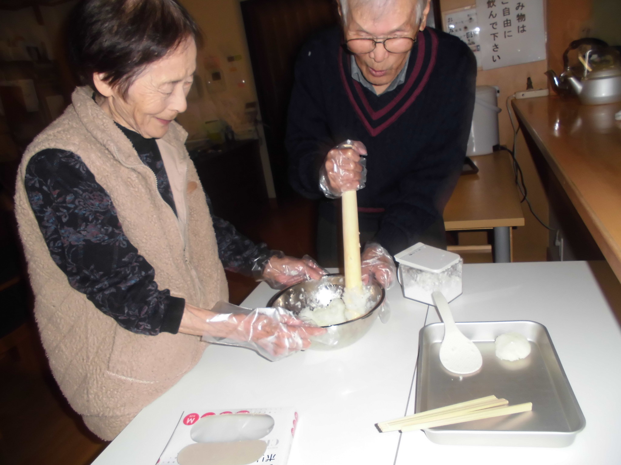 おやつの五平餅も皆さんで協力して手作りです。