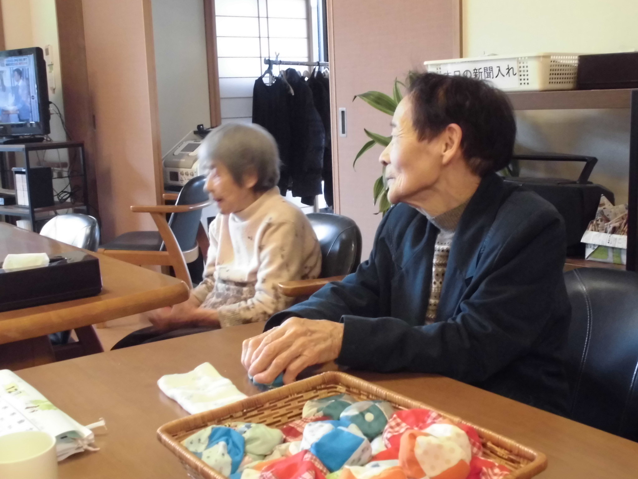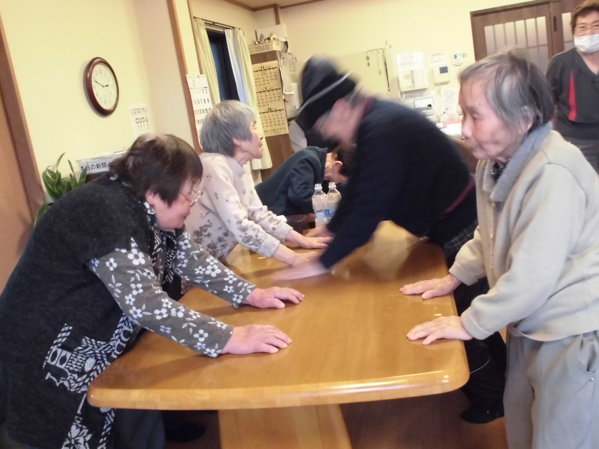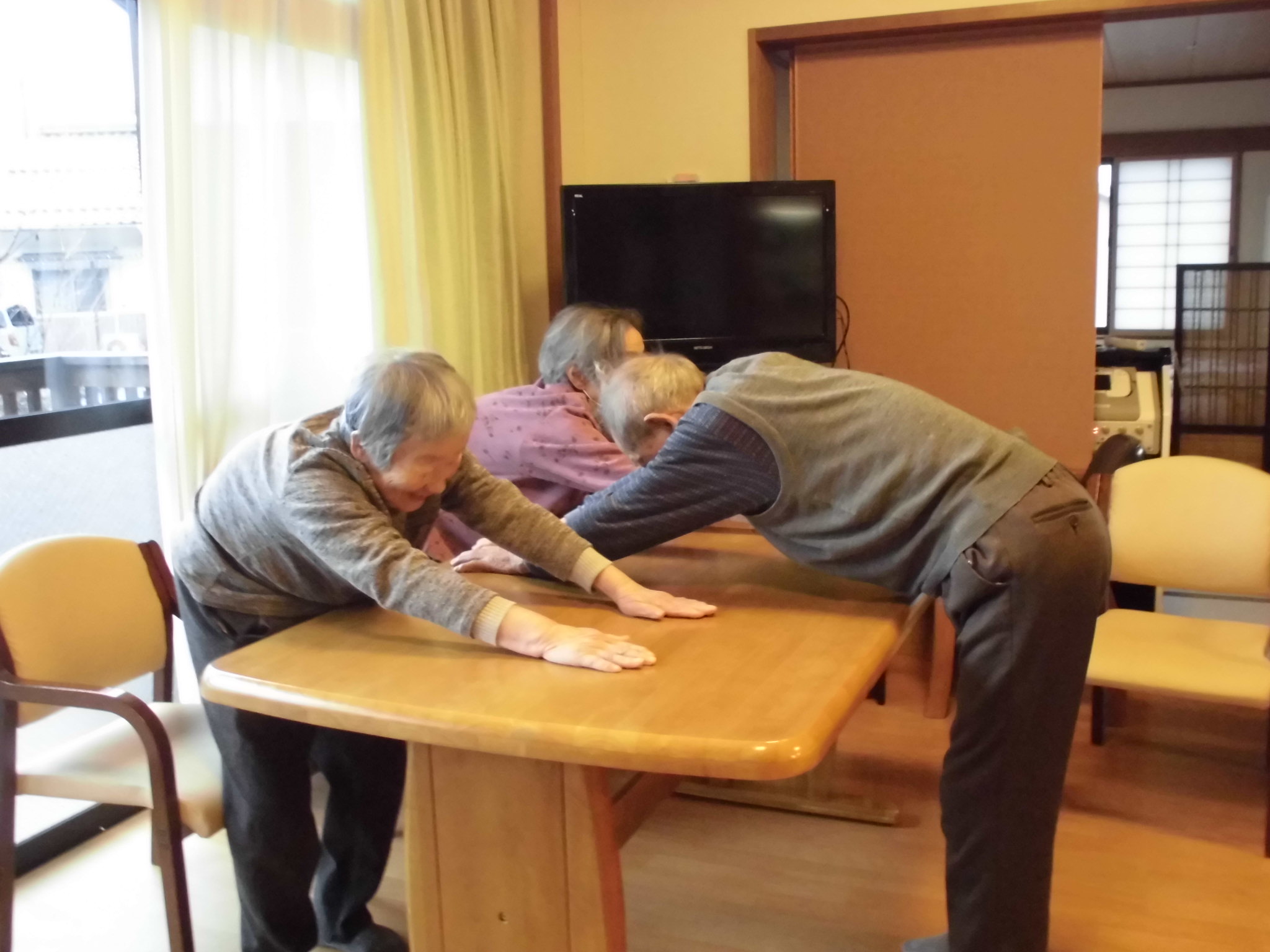 今日はテーブルを使い体操をされたりお手玉で手の体操をしました。