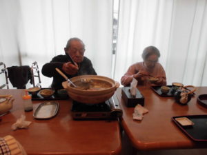 今日の昼食は野菜たっぷりのお鍋でした \(^▽^)/
