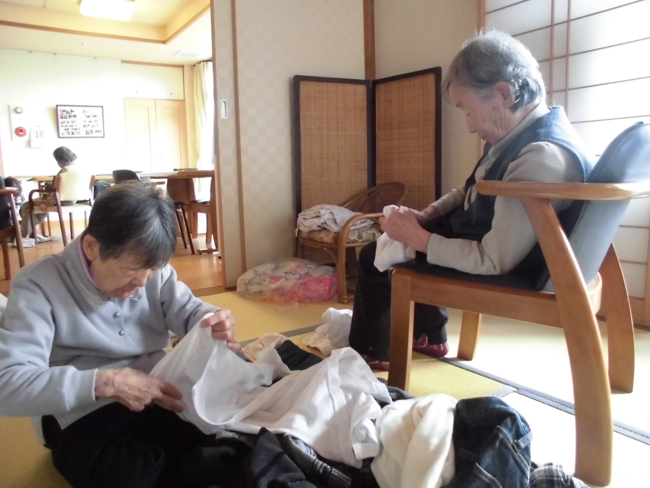 いいお天気になりました、洗濯物たたみ、
