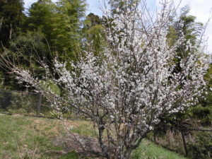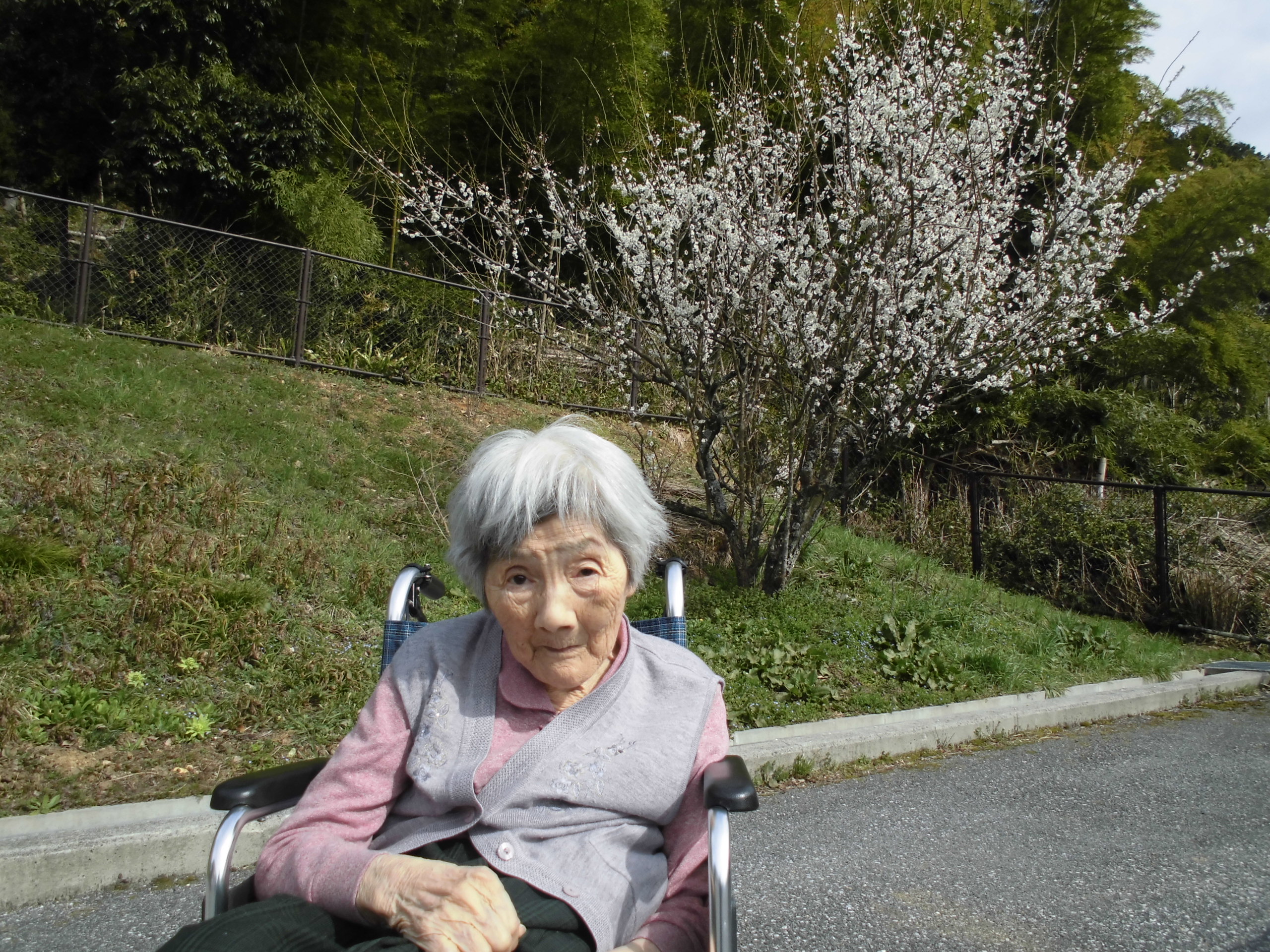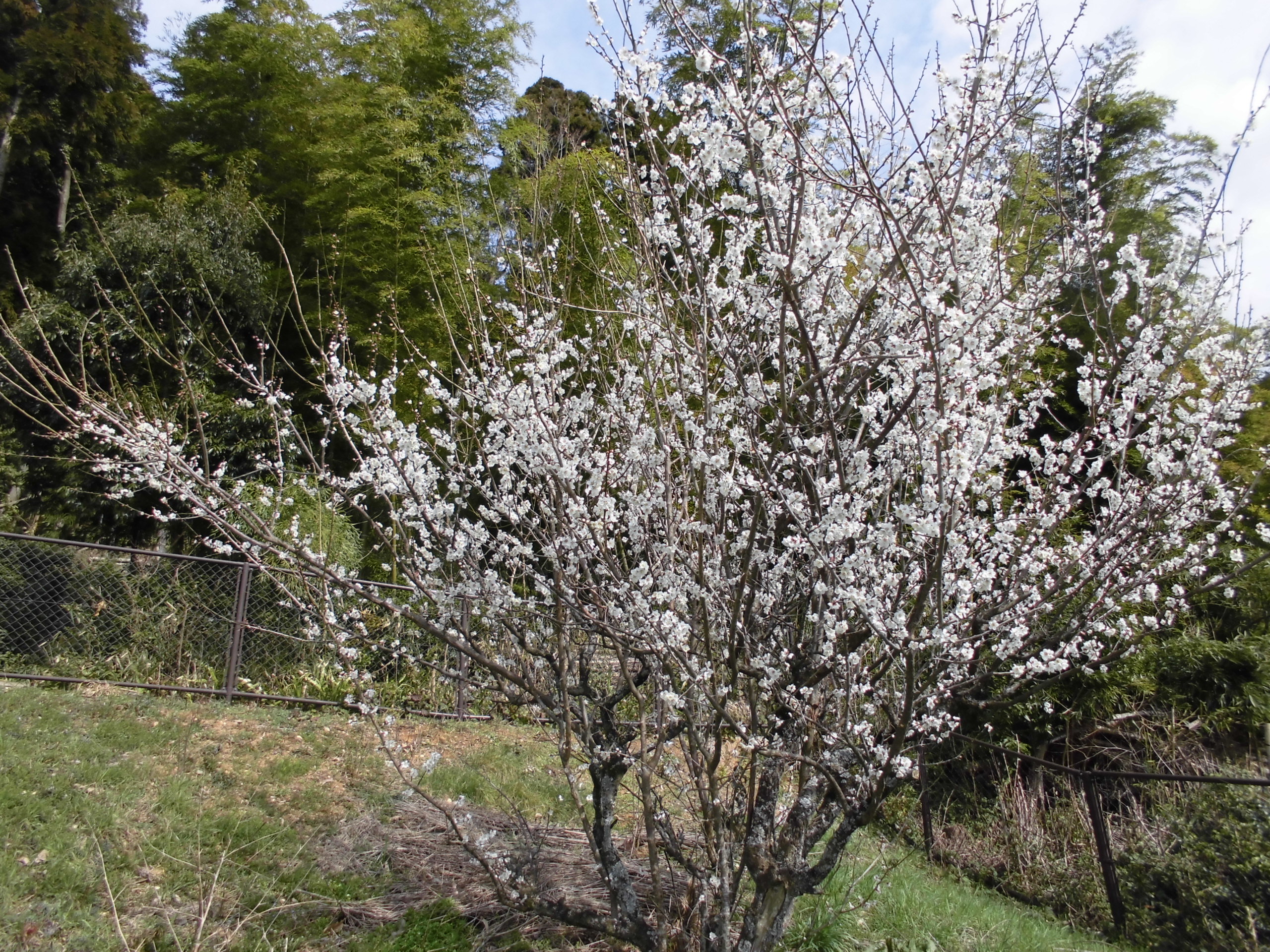 裏山の、白梅満開!≈(^o^)≈/…花をバックにいいお顔です。