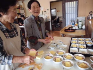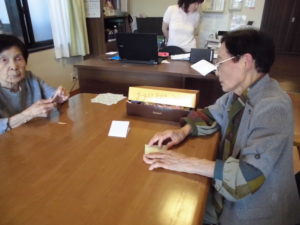 お昼ご飯のおかずの盛り付けや折り紙をしました。