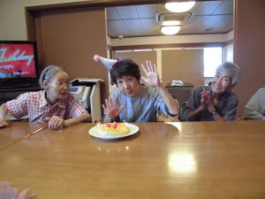皆さんとてもいい笑顔でお誕生日会を楽しんでおられます