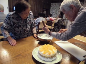 今日は利用者の誕生日でした。手作りのケーキを作ってお祝いしました。
