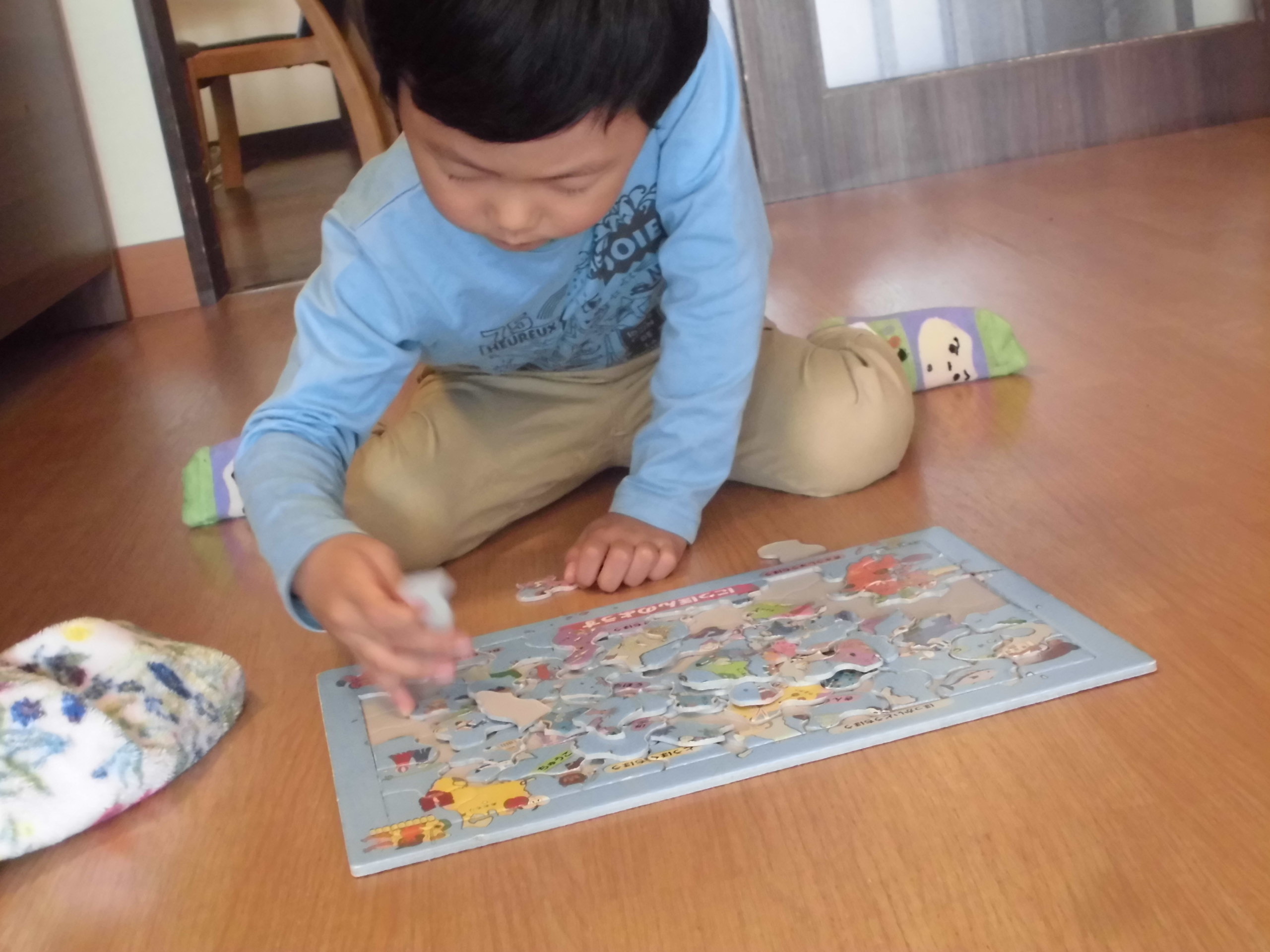 一緒に、パズルで遊んでみました、すごい!!一人で仕上げちゃったlaugh