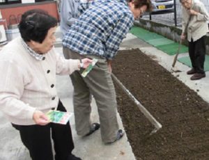 「どっちのほうれん草のほうがええやろ」と話し合いながらの種まきsmiley