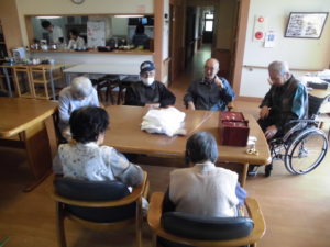 朝から、お裁縫!!新しい布巾作りを男性の利用者様も作って下さいました