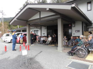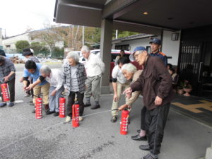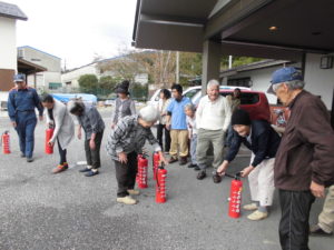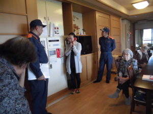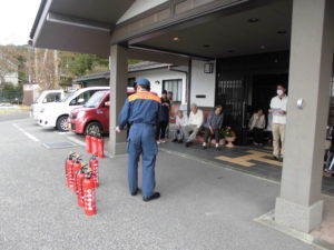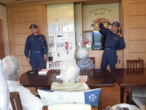 消防士さんから、消火方法、避難方法などなど、しっかり聞いておられました。