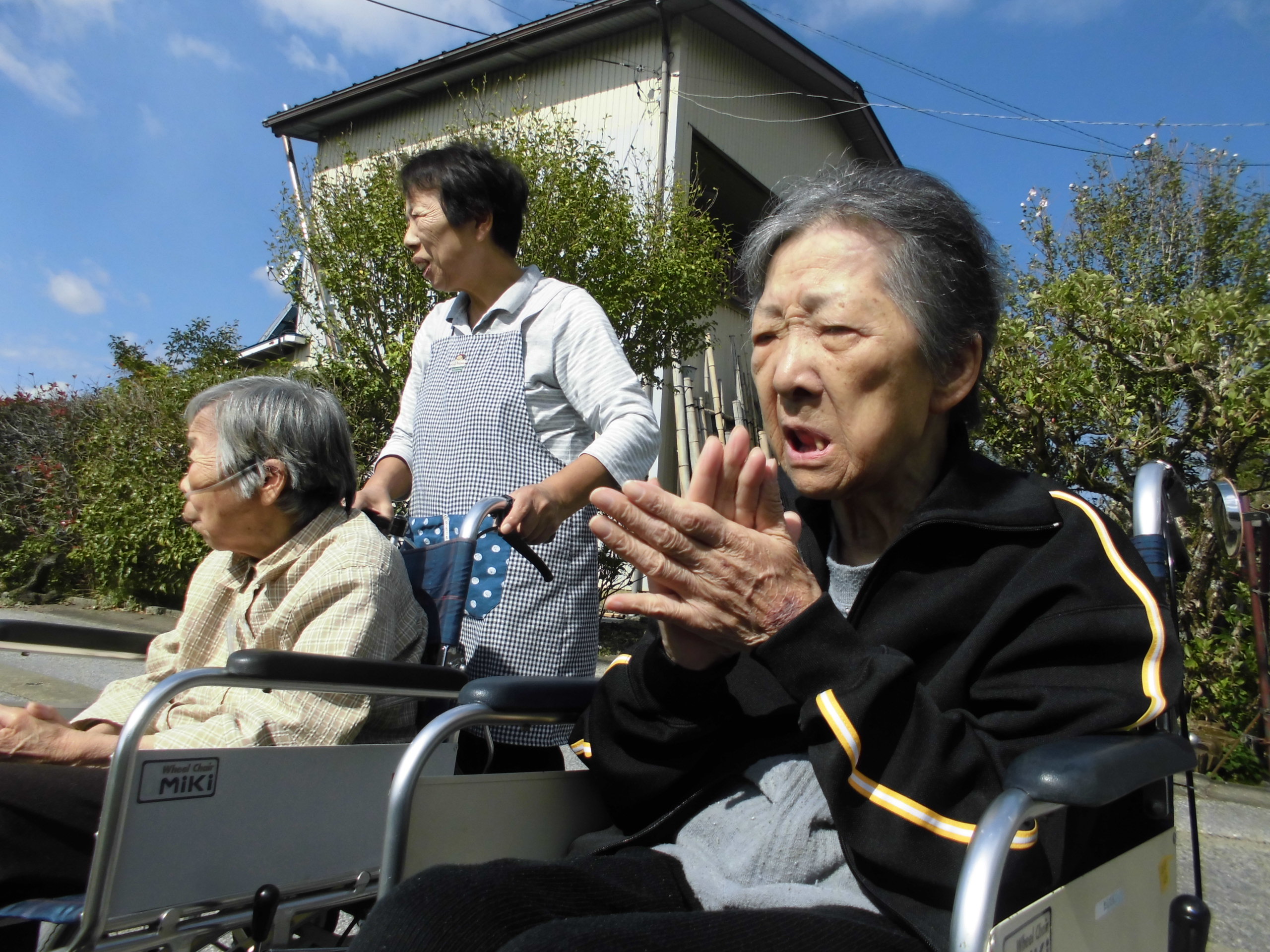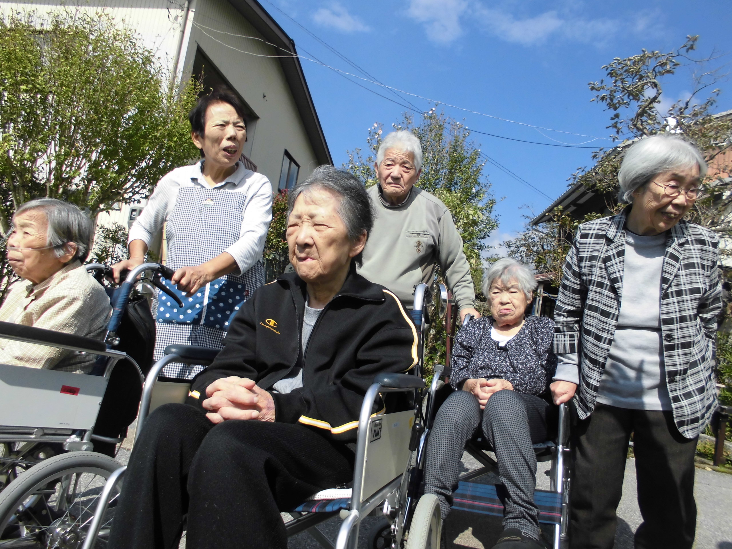 お日さまが気持ちいいので、皆さんでお散歩です**