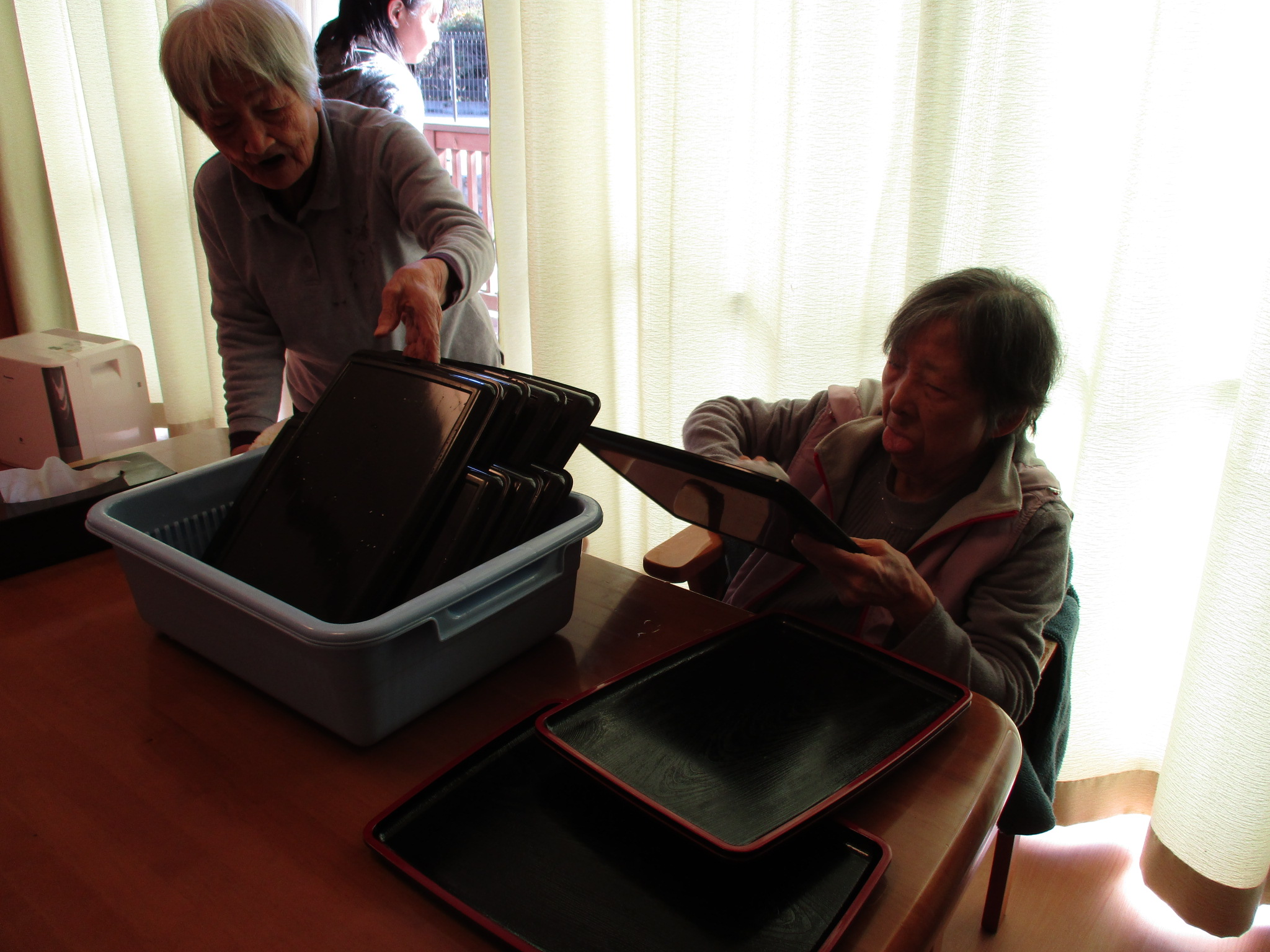 洗濯たたみやお膳拭きを自らしてくださいます。