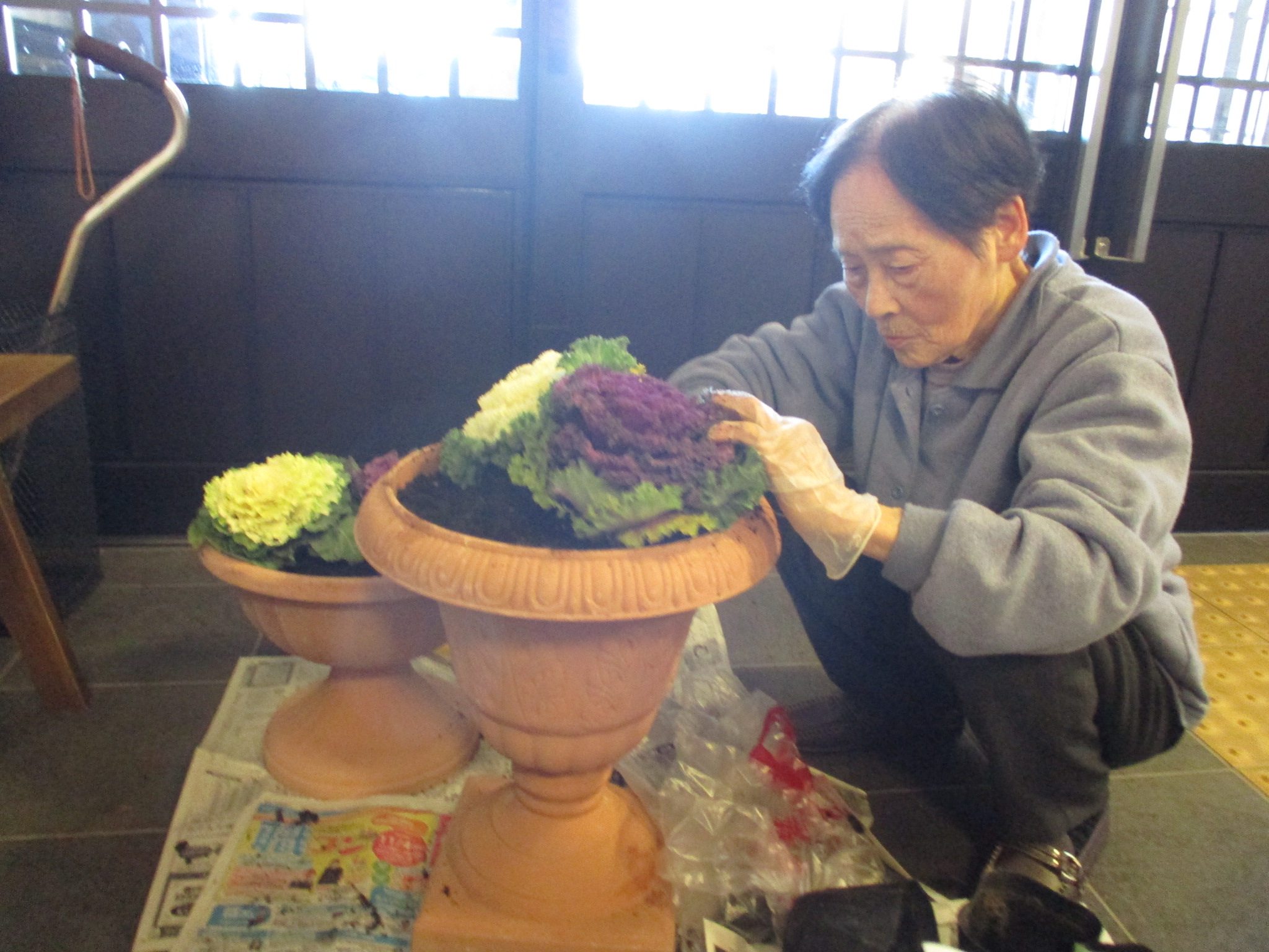 お正月の飾りの葉牡丹植えをしてくださいました素敵なお飾りが出来ました