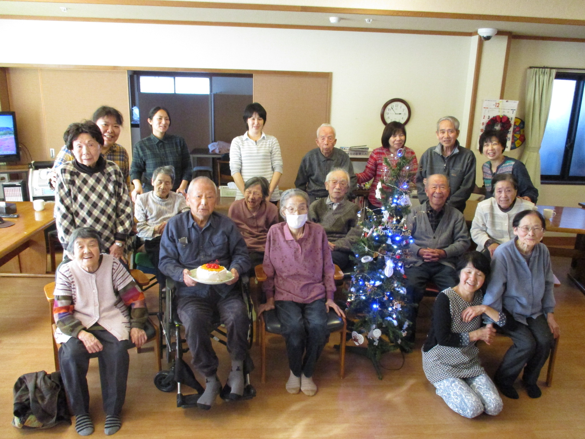 皆さんでクリスマスツリーの前で写真撮影をしたり手作りのクリスマスケーキを食べました
