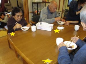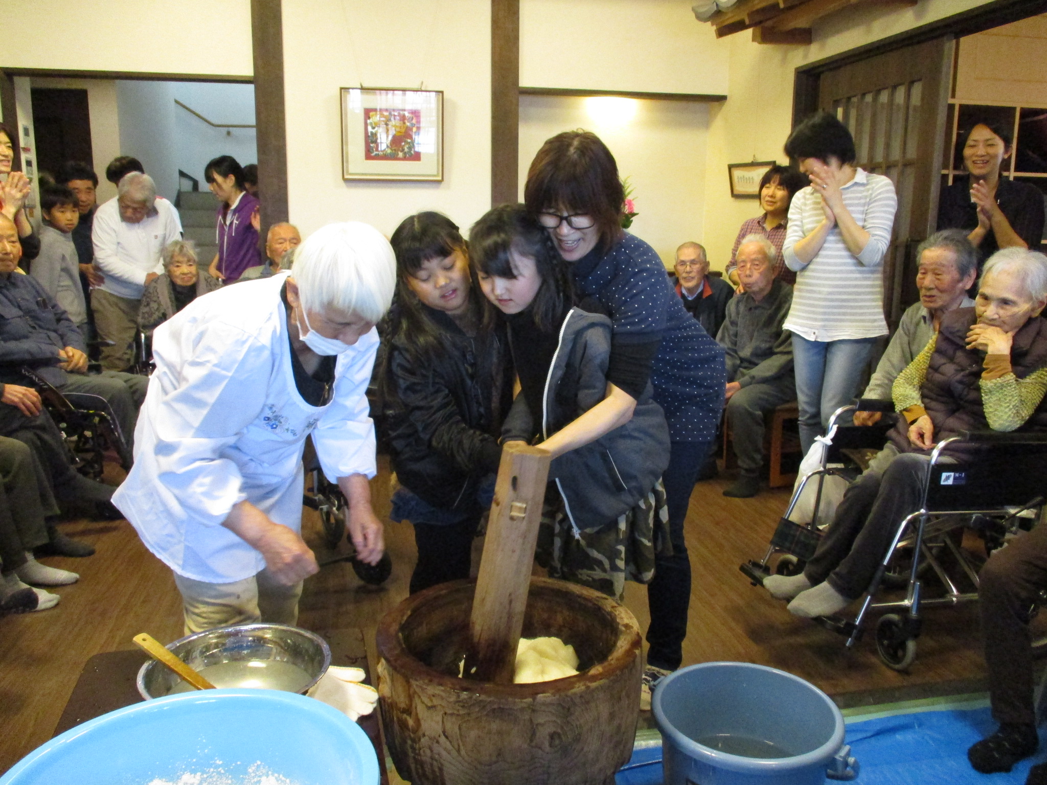 自分たちでついた美味しいお餅を皆で食べて・・・。