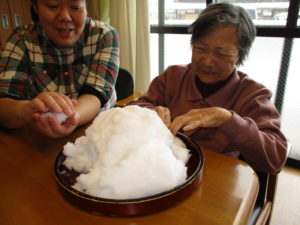 雪が積もりました。 皆さんで雪だるま☃作りです。