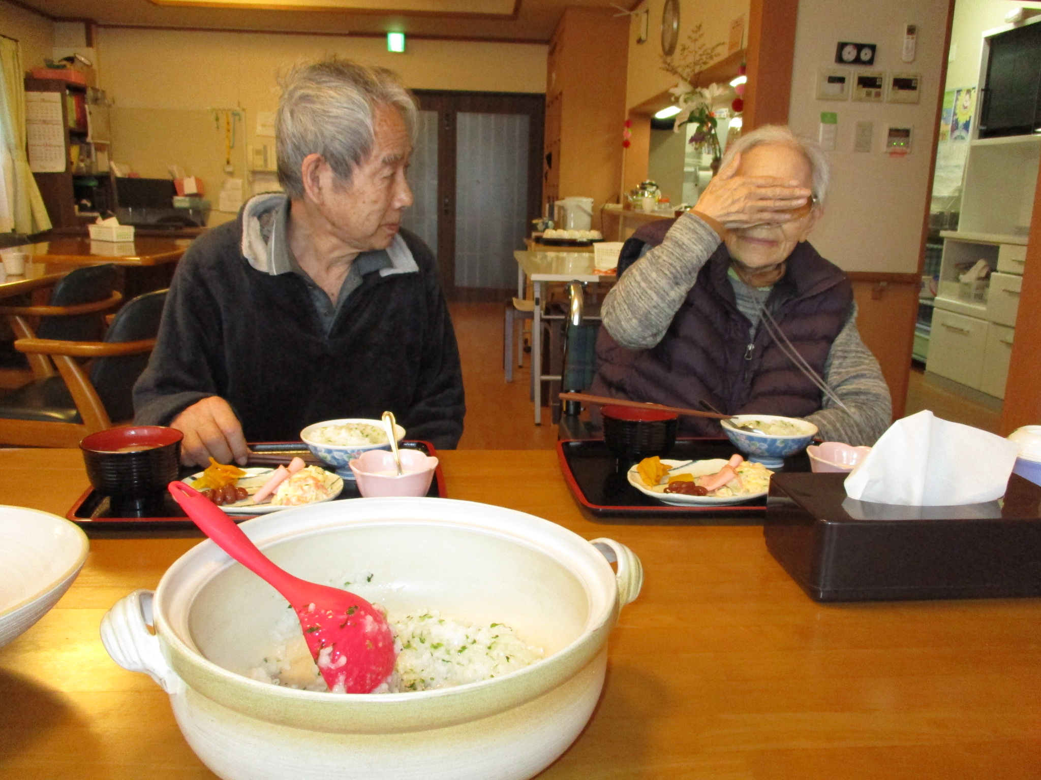 食べると良いと昔から伝えられています。皆さんで七草粥を食べましたblush 椿姫。