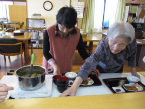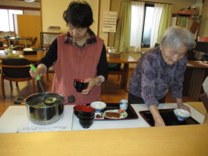 お昼ご飯は、秋刀魚の蒲焼定食、順番にお膳にのせて