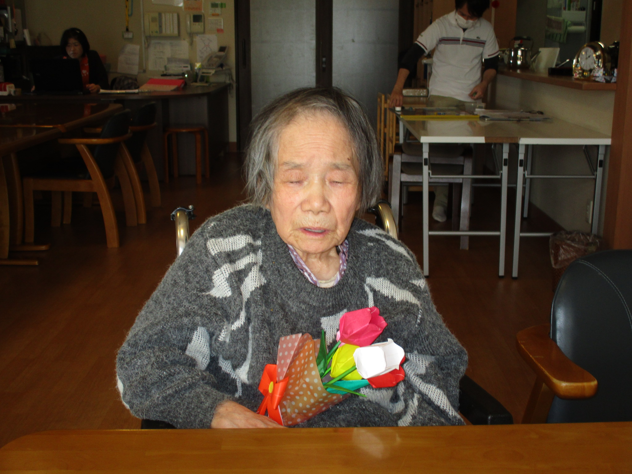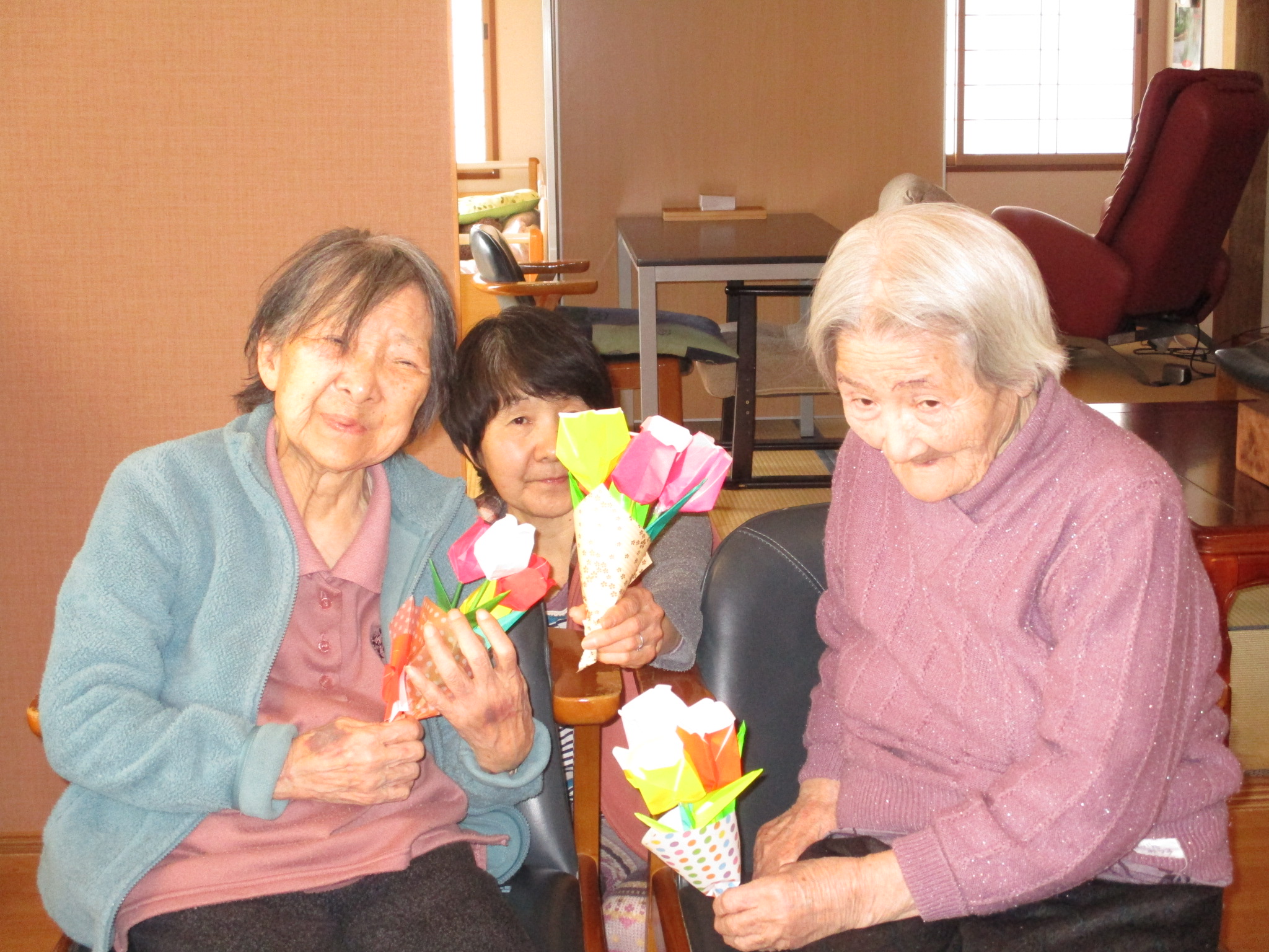 まんてんに春が。折り紙でチューリップを折りました。✿