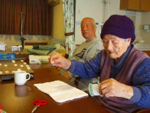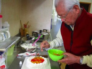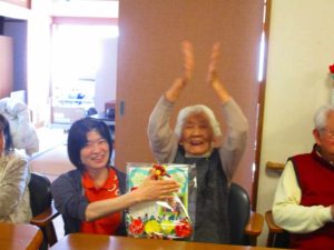 今日は、お誕生会。ケーキを作ってお祝い。いつまでも元気でいてください。