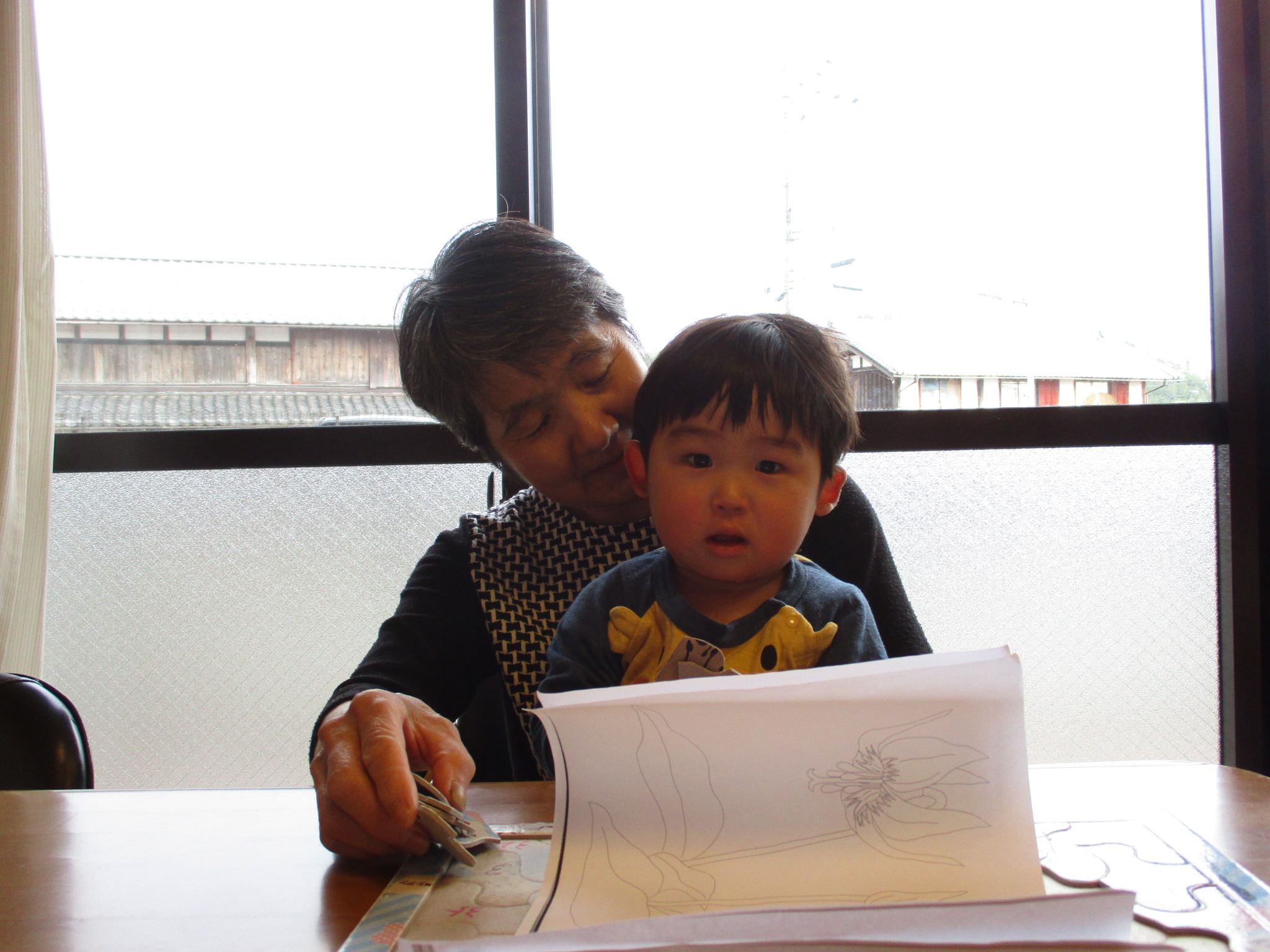 小さなお客さまとハイ!!チーズ!!(職員のお孫さんです)