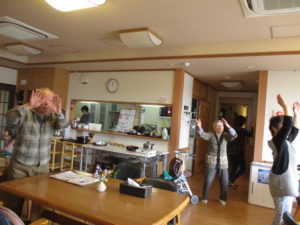 お昼ご飯前の体操皆さんしっかり動いてくださいます