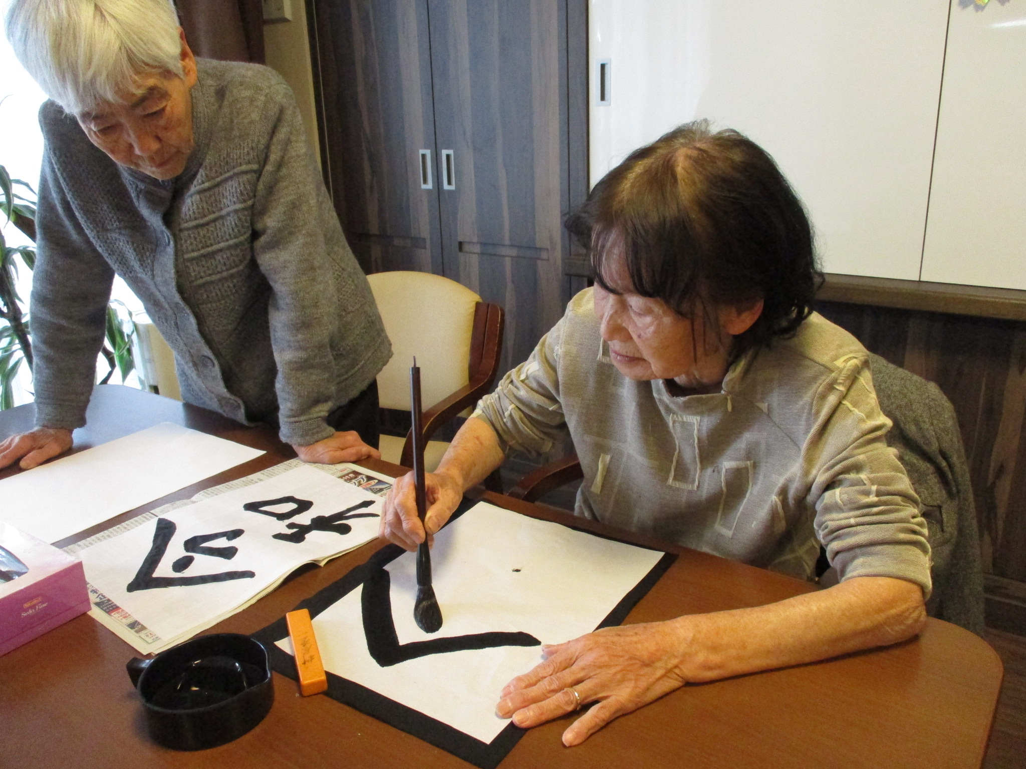 力強い字で書かれたり丁寧な字で書き初めを書かれていました。まんてんの皆さんも新しい元号を