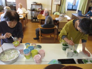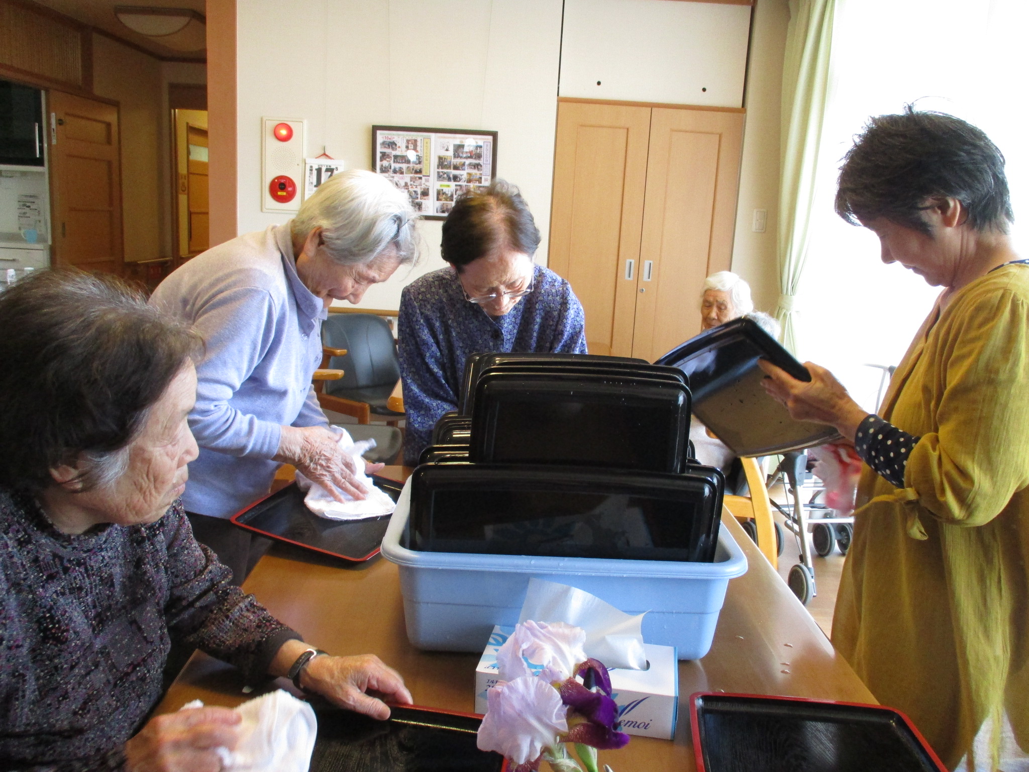 「これ分けるんか」「お膳拭くわ」と