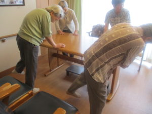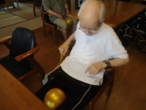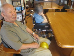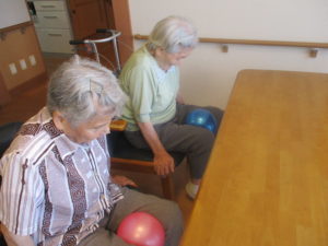テーブルを使った脚の体操、ボール体操((v(Õ¸Õ)v))