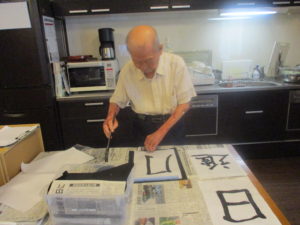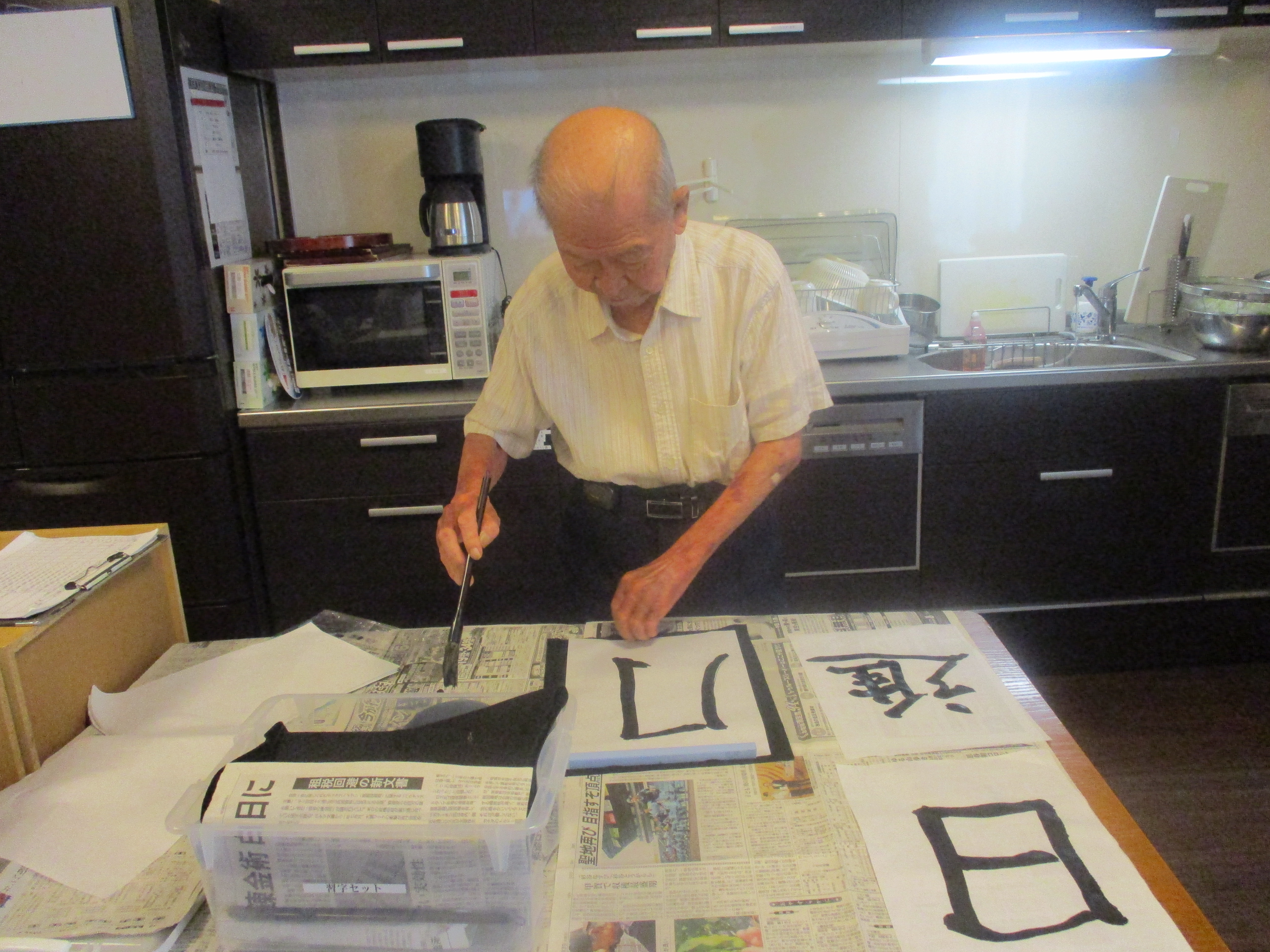 一筆に力を入れて丁寧に書道を書かれておられました。