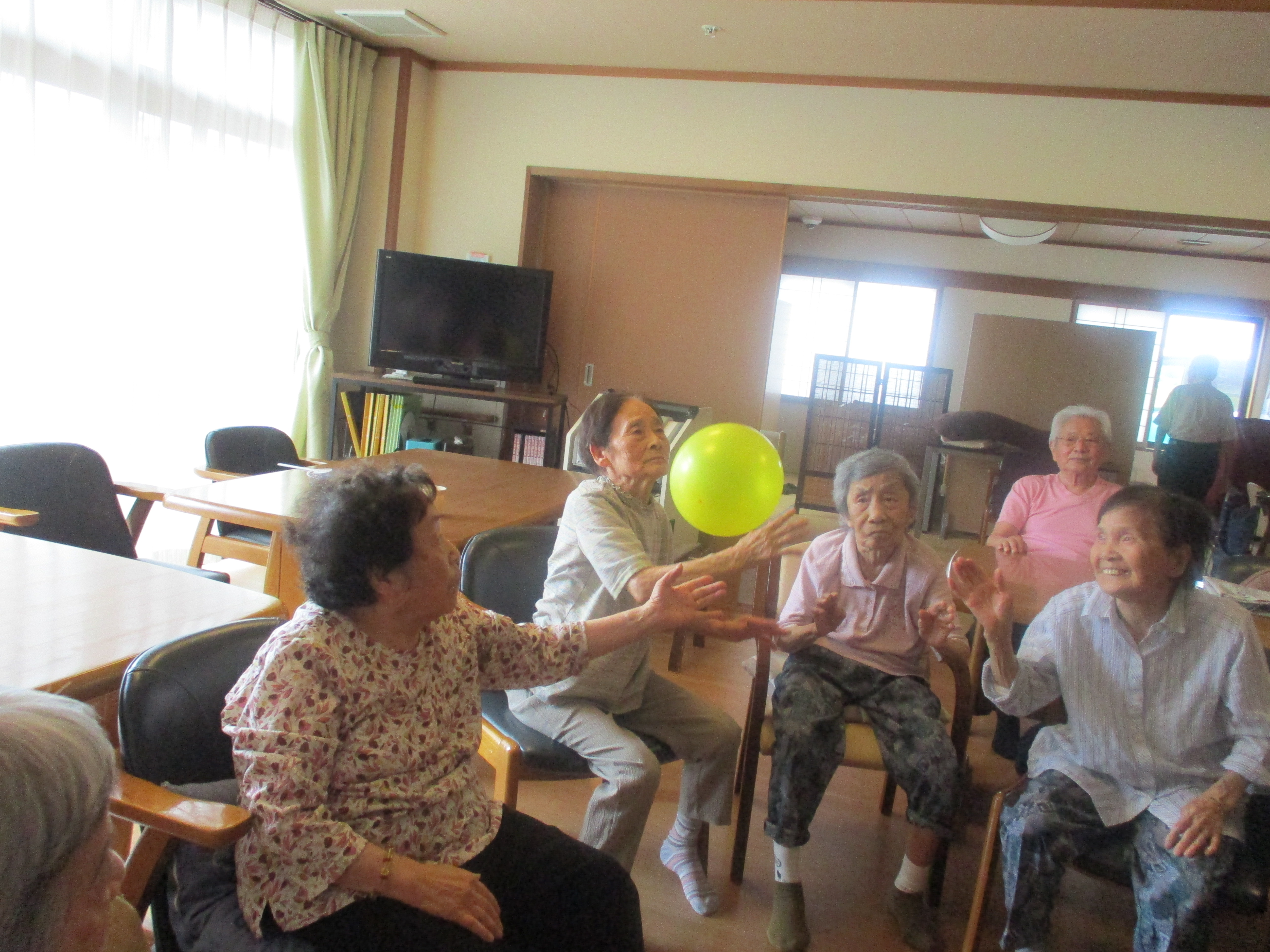 「ハイ、そっち」「今度はこっち」と声を掛け合い風船バレーで盛り上がりました