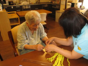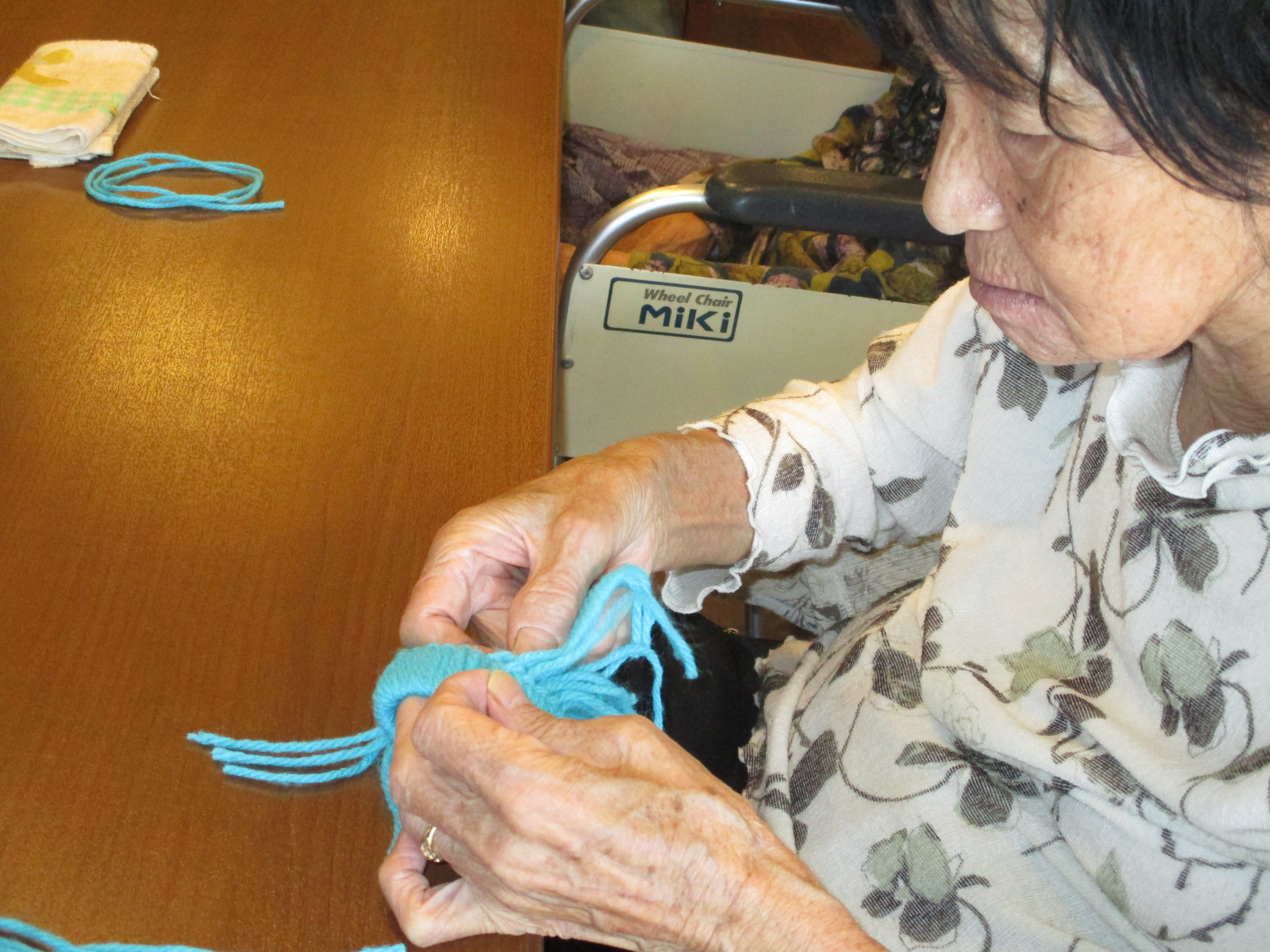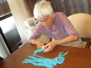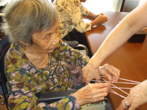 皆さん。集中されて(飾り作り)をされたり、懐かしい様子で楽しみながら(あやとり)を