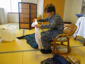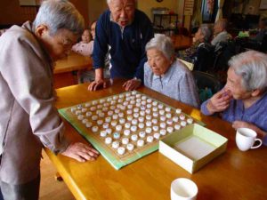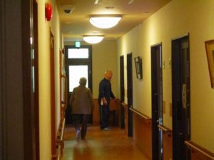 廊下を歩いて歩行訓練されたり談笑されたりしています。