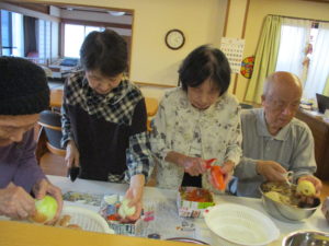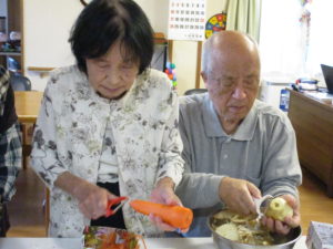 今日は、お泊りの方で明日のカレーライスの材料を包丁で切って下さったり、ピューラーを