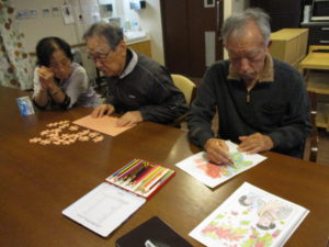 (かるた)や(塗り絵)や(オセロ)や(脳トレプリント)等一人で集中されて過ごされたり、