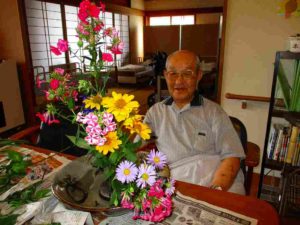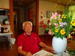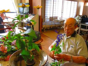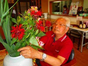 男性陣が生け花に挑戦。