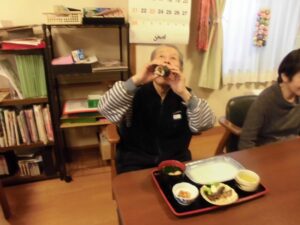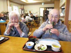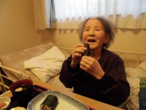 昼食は皆さんで恵方巻といわしをいただきました