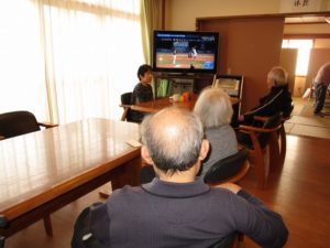 野球中継にみなさん夢中。