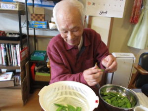 まんてんで収穫できた、;さやえんどう;