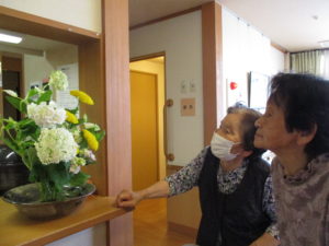 生花を直して、「これでよかろ」とうなずきあっている方もいらっしゃれば