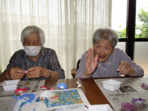 障子紙を絵の具に浸して朝顔を作って下さる方もあり。
