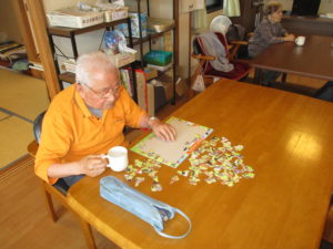 パズルで脳トレされる方、洗い物の手伝いをしてくださる方、プチトマトの収穫を