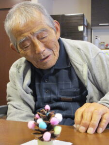松ぼっくりの小さなツリーもきれいに飾れましたね。 木
