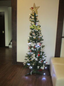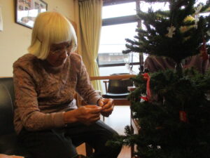 今日は皆さんでクリスマスツリーを飾り付けました。大きなツリーも