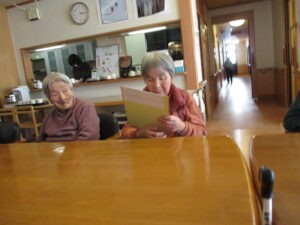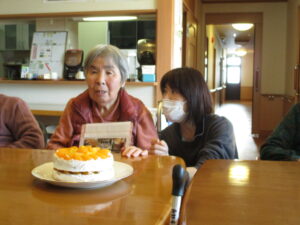 今日はお誕生日会がありました。バースデーカードのご自身の写真をご覧になって